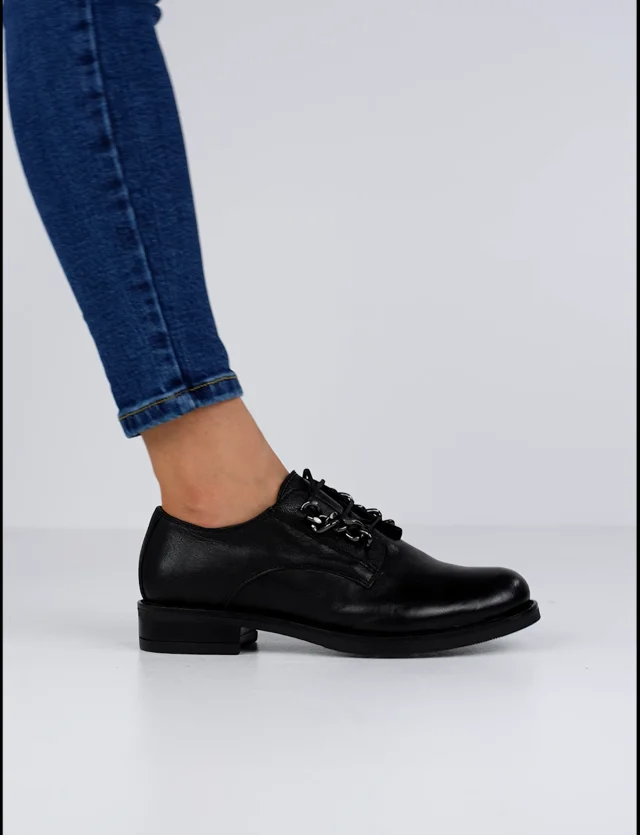 Lace up Flat Shoes handmade leather Shoes black made in Greece