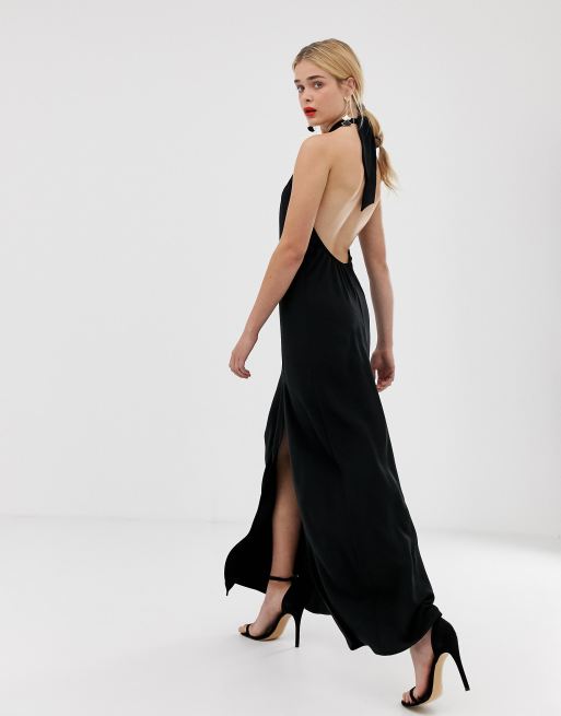 Black silk sale halter dress, Satin Halter Low Back Plunge Maxi Dress Nasty Gal sale