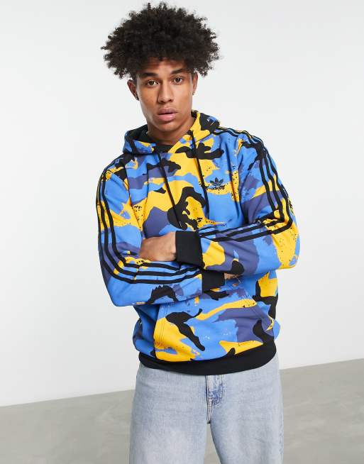 Blue and sale yellow adidas hoodie, adidas Originals Graphics all over camo print hoodie in collegiate sale