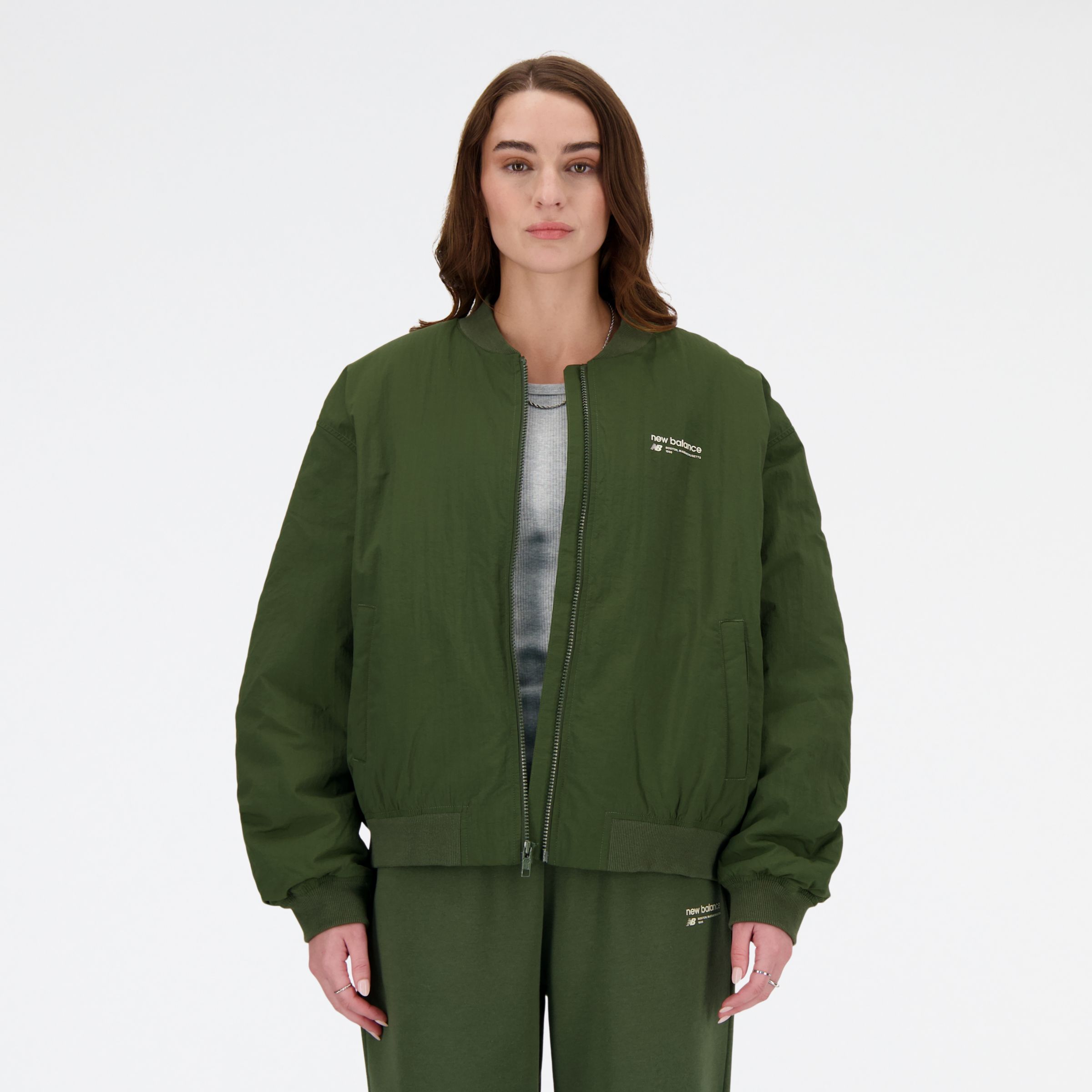 Women s Linear Heritage Woven Bomber Jacket Apparel New Balance