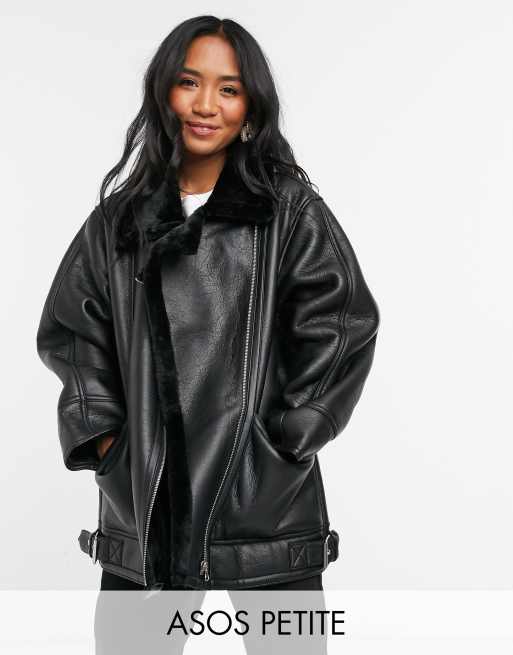 ASOS DESIGN Petite borg aviator jacket in black ASOS
