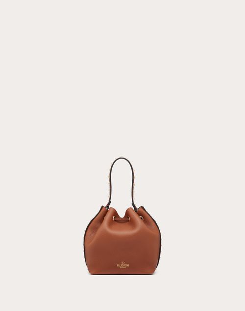 Rockstud Grainy Calfskin Bucket Bag for Woman in Black Valentino US