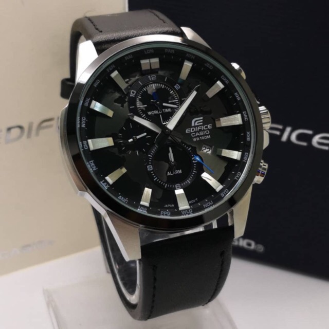 Casio sale edifice 303l, BUY Casio Edifice Dual Dial World Time Alarm Leather Strap Mens sale