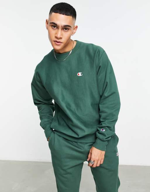 Champion sweater sale dark green color, Champion Uo Exclusive Reverse Weave Crew Neck Sweatshirt In Dark sale