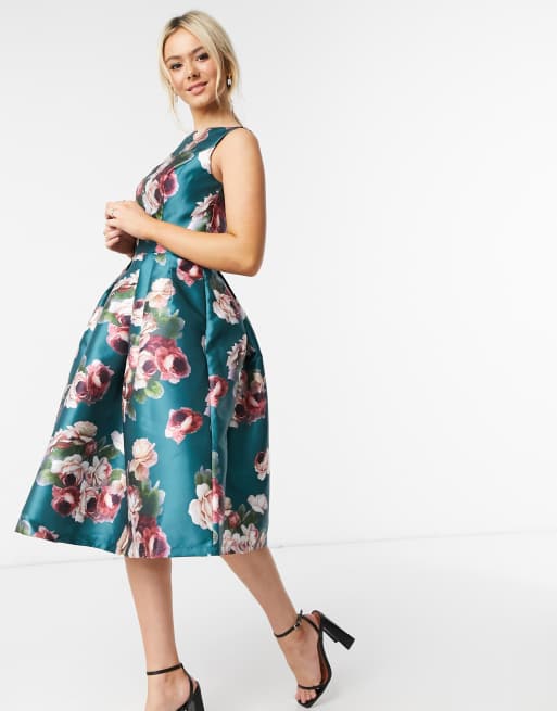 High Neck lace long Sleeve Midi Dress in Green Chi Chi London