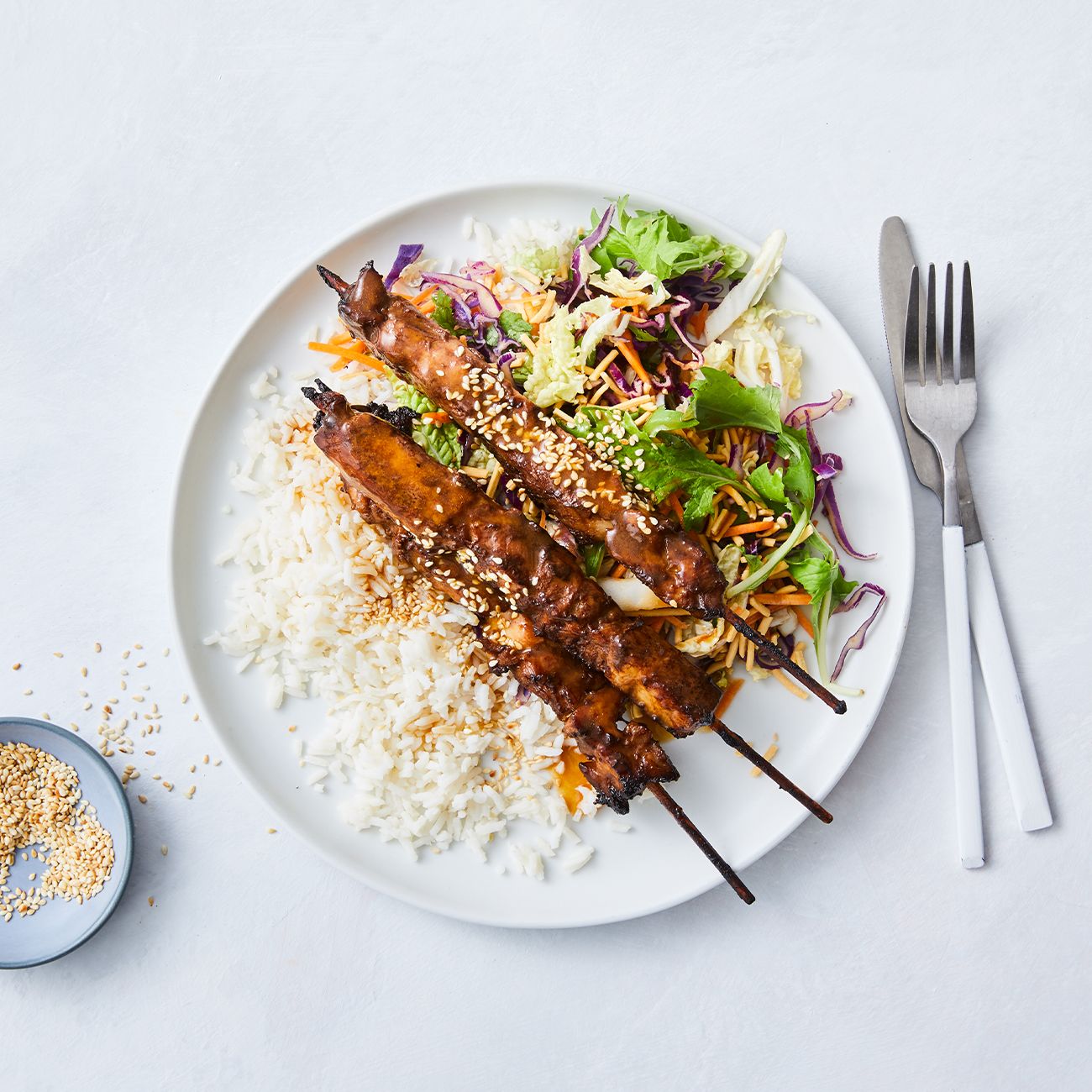 Chicken kebab sale with rice, Honey Soy Chicken Kebabs With Asian Salad Sesame Rice Recipe Woolworths sale