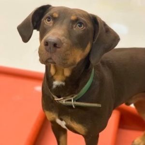 Dog for adoption Red a Doberman Pinscher Chocolate Labrador