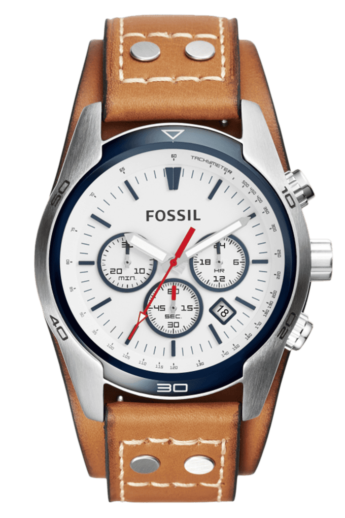 FOSSIL MENS COACHMAN STAINLESS STEEL CHRONOGRAPH WATCH WITH BROWN