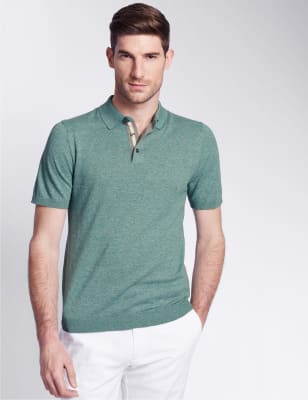 Tailored Fit Knitted Polo Shirt with Linen Collezione M S