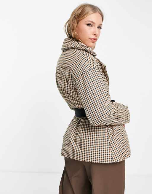 Fashion Union cropped fitted puffer jacket with tie waist in check