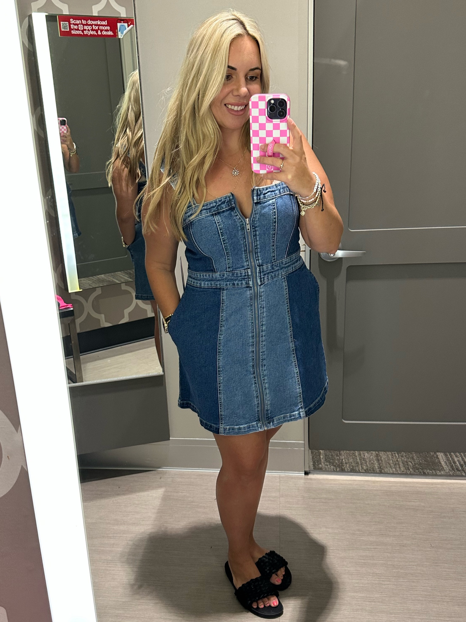 Target blue stretch denim overalls dress pinafore GUC size 9