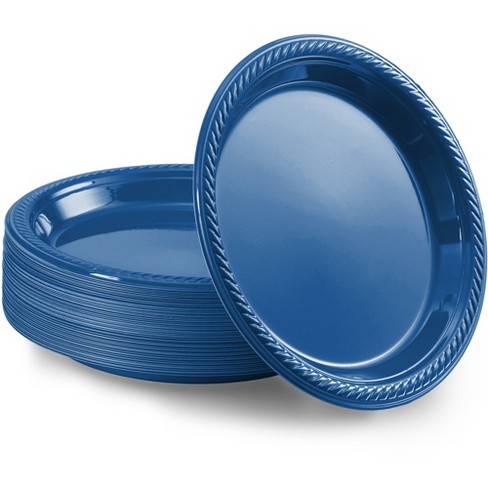 SparkSettings Royal Blue Disposable Plastic Dessert Plates 7 Inches Pack of 50