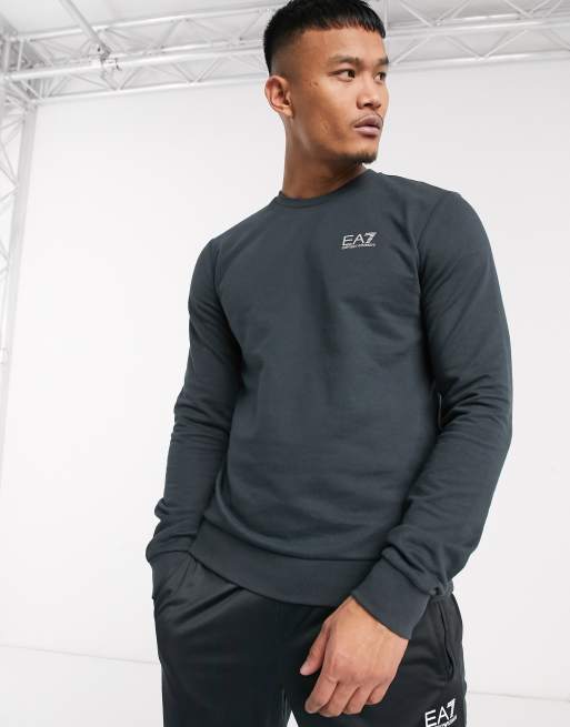Armani EA7 Core ID small silver logo crew neck sweat in navy ASOS