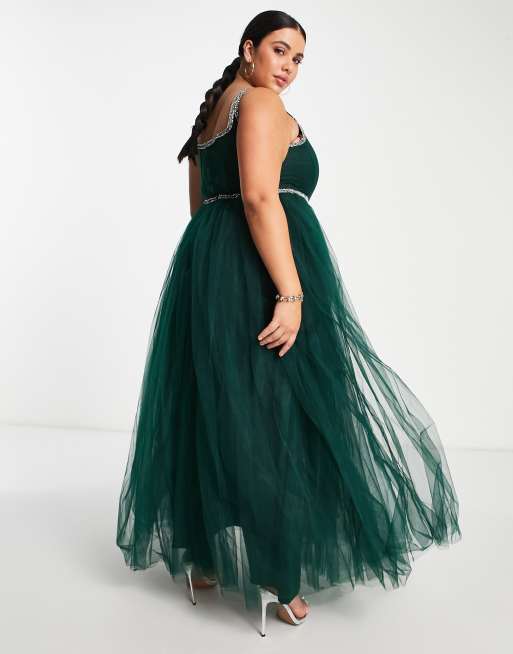 Lace Beads Plus Exclusive corset embellished maxi dress in emerald green