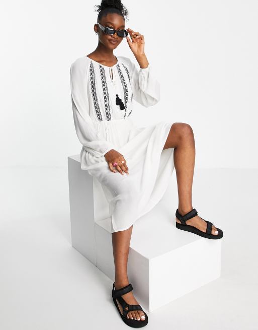 En Cr me long sleeve maxi smock dress with embroidery detail