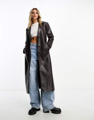 Vintage Look Faux Leather Midaxi Jacket boohoo