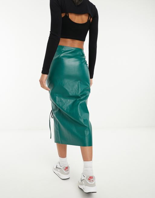 ASOS DESIGN faux leather midi skirt with lattice tie detail in
