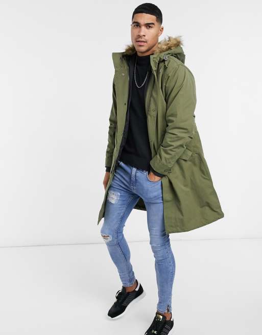 Fred Perry faux fur hooded parka coat in khaki ASOS