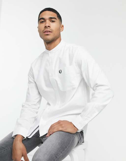 Fred perry sale white shirt, Fred Perry grandad collar oxford shirt in white ASOS sale