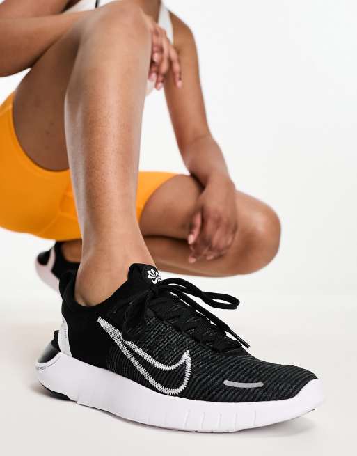 Nike Free Run Flyknit sneakers in black white ASOS
