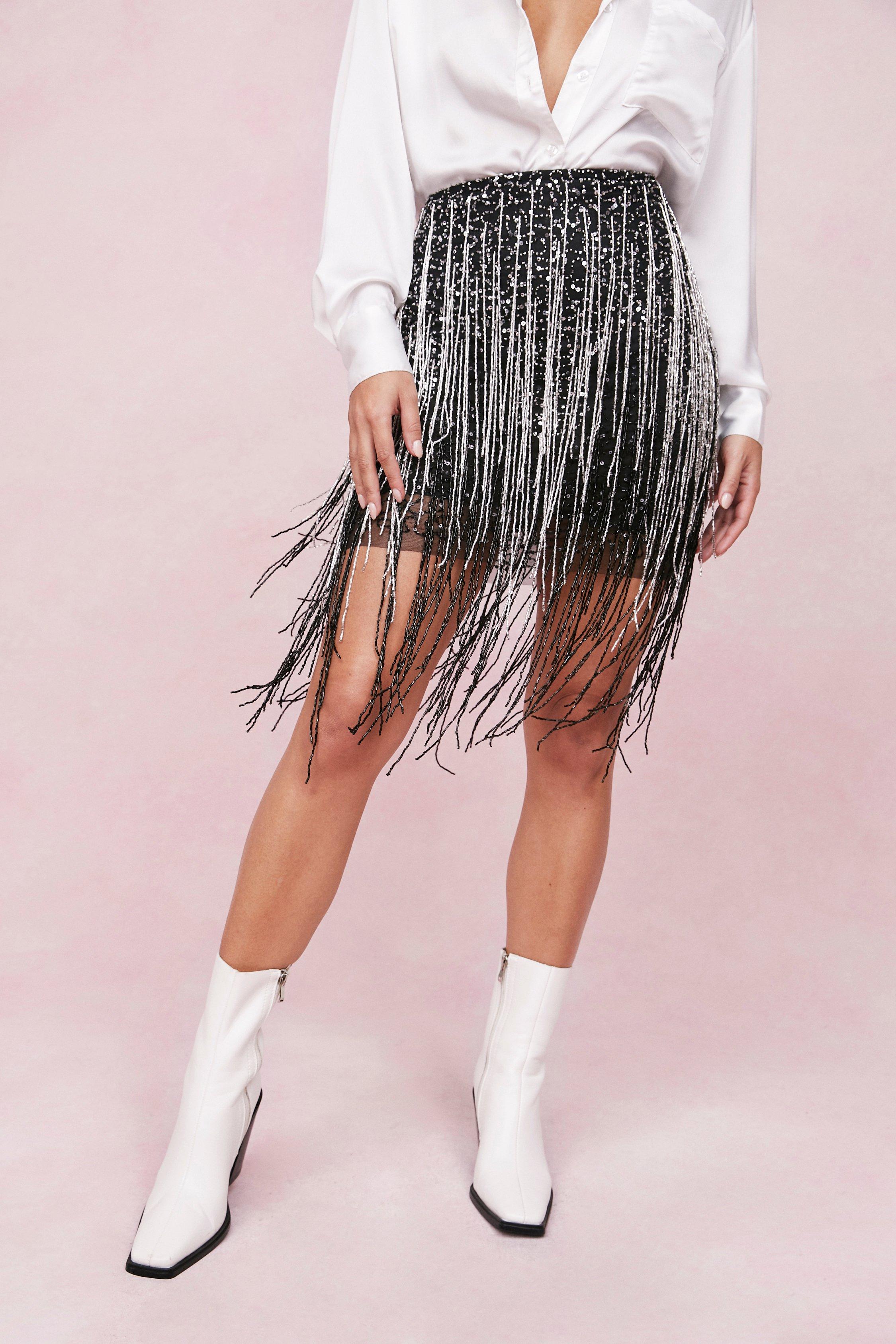 Fringe sale on skirt, Tassel Beaded Metallic Fringed Mini Skirt Nasty Gal sale