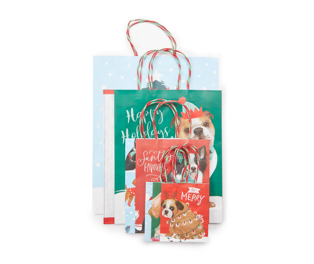 Winter Wonder Lane Red Green Blue Holiday Dogs Paper Gift Bags