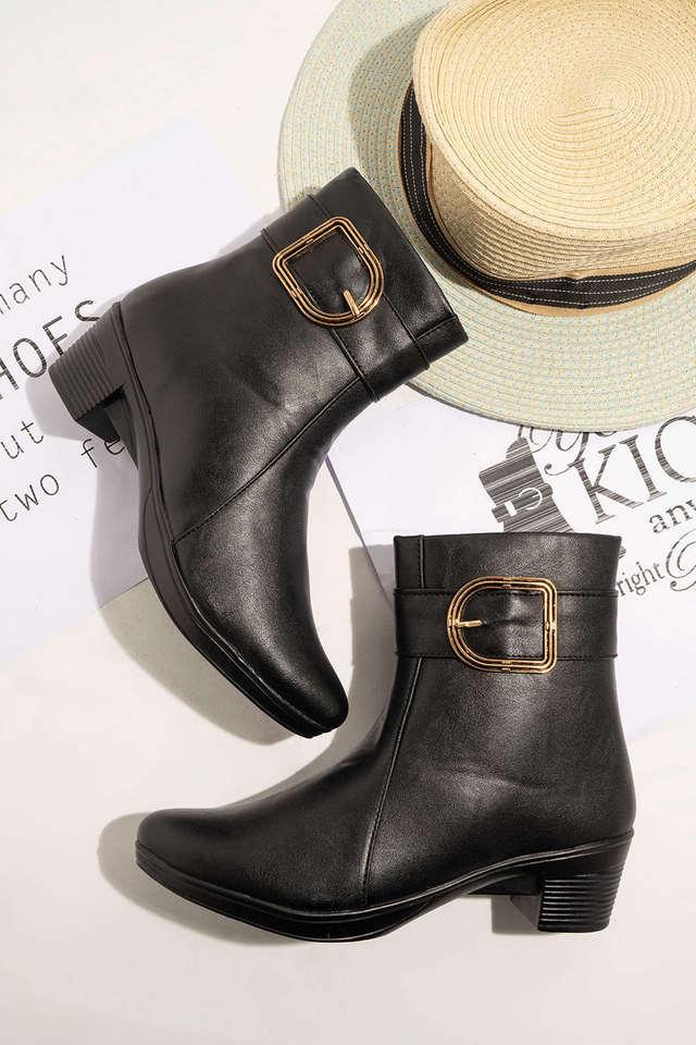Buy SHOETOPIA Black Synthetic Buckle Girls Casual Boots Shoppers