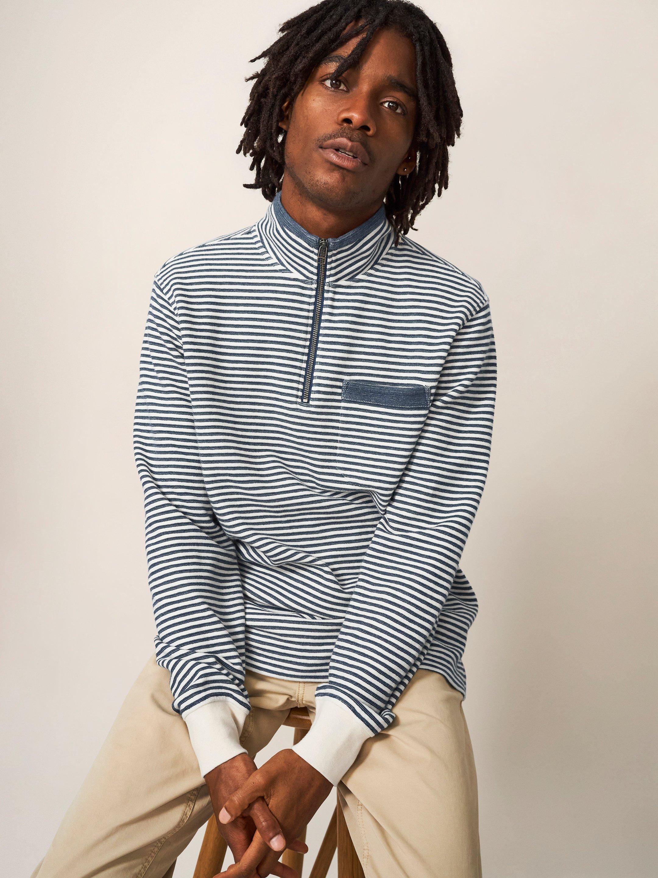 Garcie Stripe Zip Neck Jumper in CHAMBRAY BLUE White Stuff