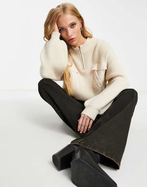 Only knitted half zip jumper with pocket detail in cream ASOS