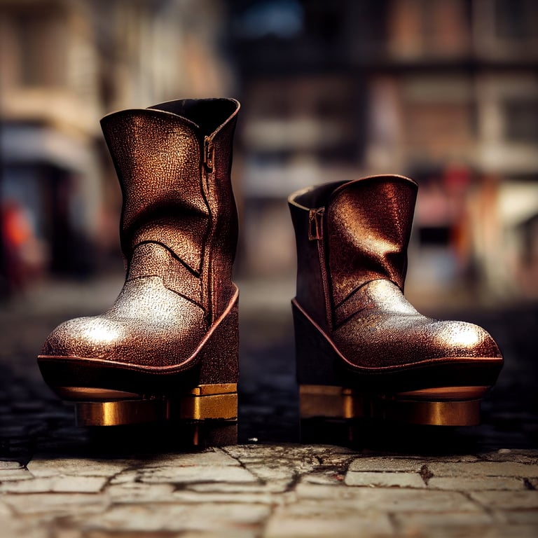 prompthunt high heeled steel cap boots on cobblestone highly