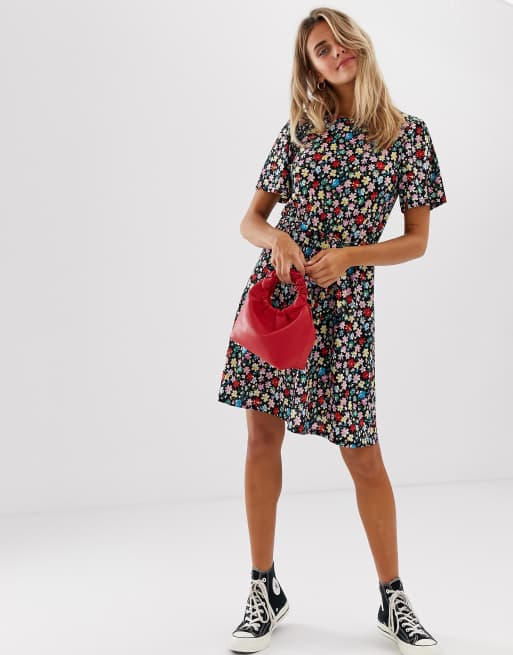JDY Multicoloured Floral Tie Back Mini Dress New Look