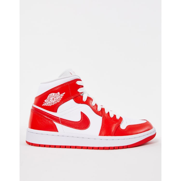Jordan Air 1 Mid Sneakers alte bianche e rosse ASOS