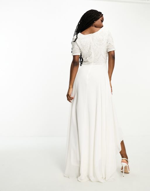 Beauut Robe 2 en 1 de mari e ornement e courte devant et longue