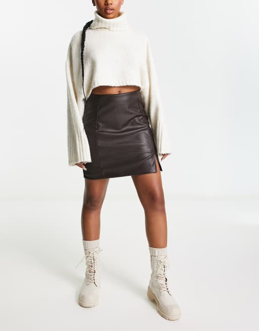 Jupe simili cuir Marron Nice Jeunes et Jolies