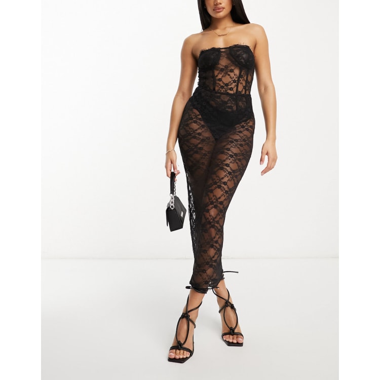 Fashionkilla Ensemble body et jupe mi longue en dentelle Noir