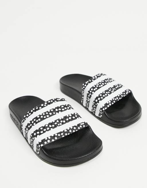 Sandalias negras con estampado de lunares adilette de adidas Originals