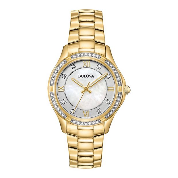 Bulova Women s Gold Tone Stainless Steel Mother Of Pearl Crystal