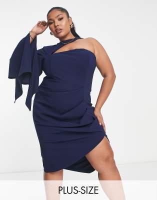 Lavish Alice Plus one shoulder cape detail midi dress in navy
