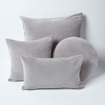 Homescapes Light Grey Velvet Cushion 40 cm Round DIY at B Q