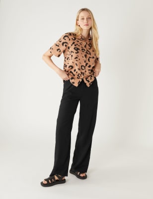 New Look Women s Size 12 Linen Rich Wide Leg Trousers with