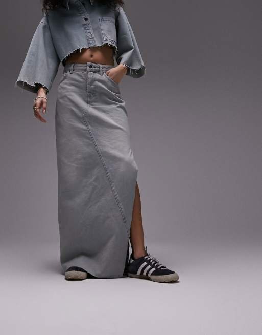 Topshop denim maxi skirt with side split in authentic blue