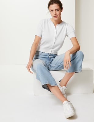 Pure Cotton Round Neck Short Sleeve Cardigan M S Collection M S
