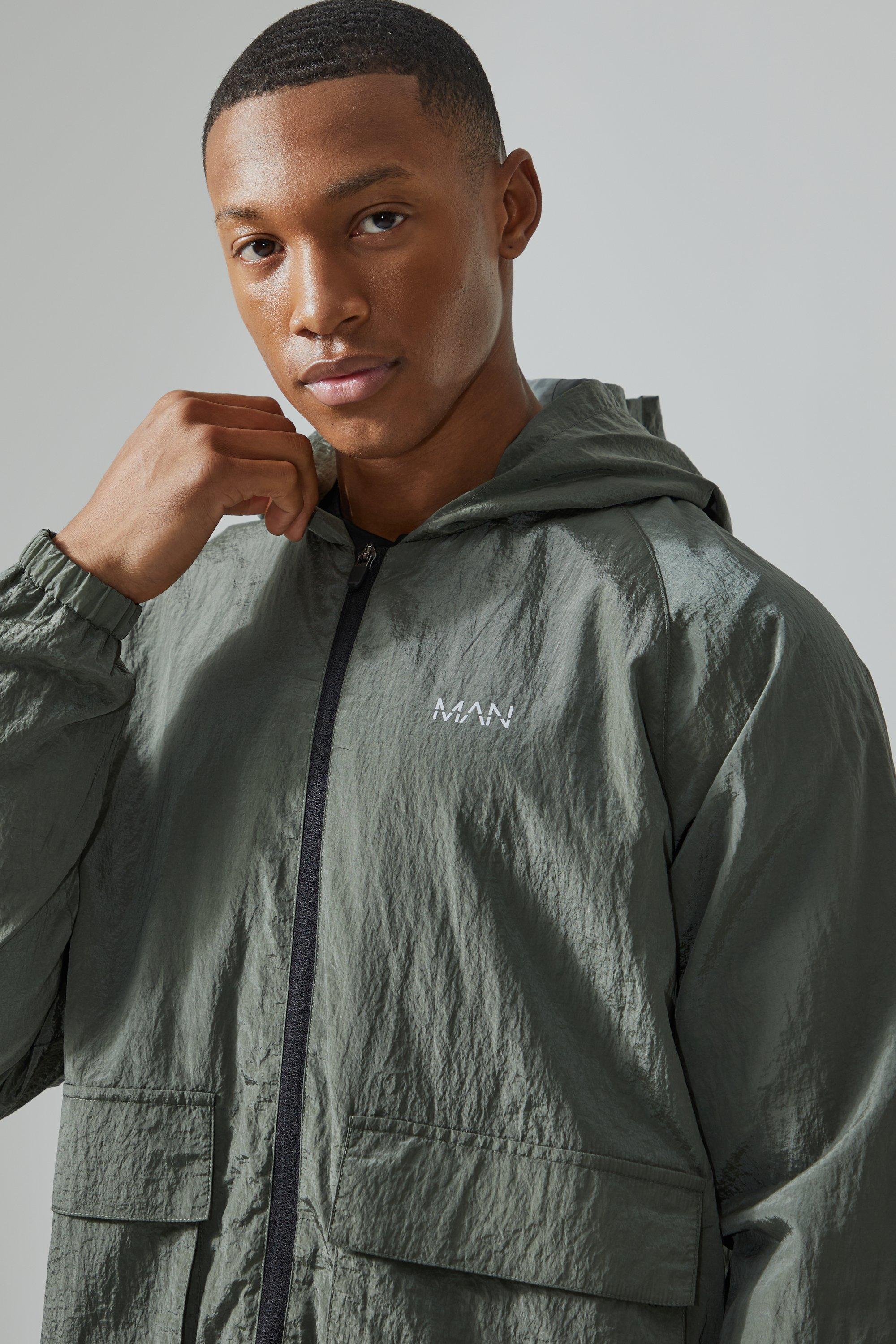Man Active Crinkle Nylon Utility Windbreaker boohoo