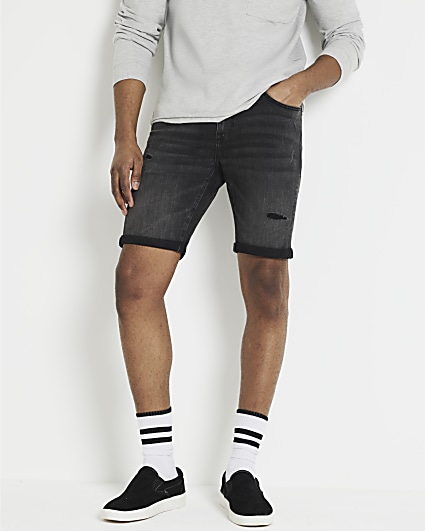 Mens skinny sale black shorts, Skinny Stretch Distressed Denim Shorts boohoo sale