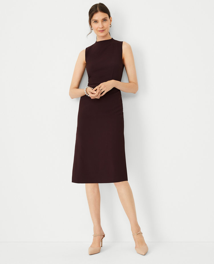The Mock Neck Side Slit Sheath Dress in Fluid Crepe