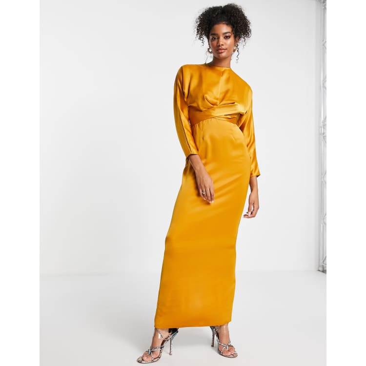 ASOS DESIGN satin maxi dress with batwing sleeve and wrap waist in