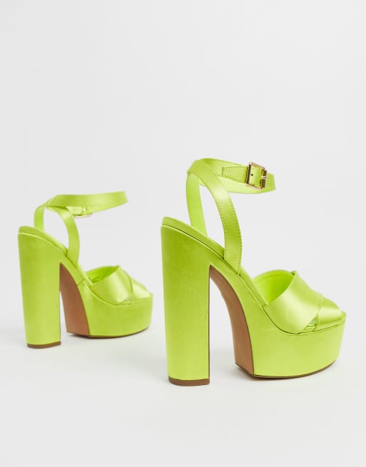 ASOS DESIGN Novel chunky platfrom heeled sandals in lime green