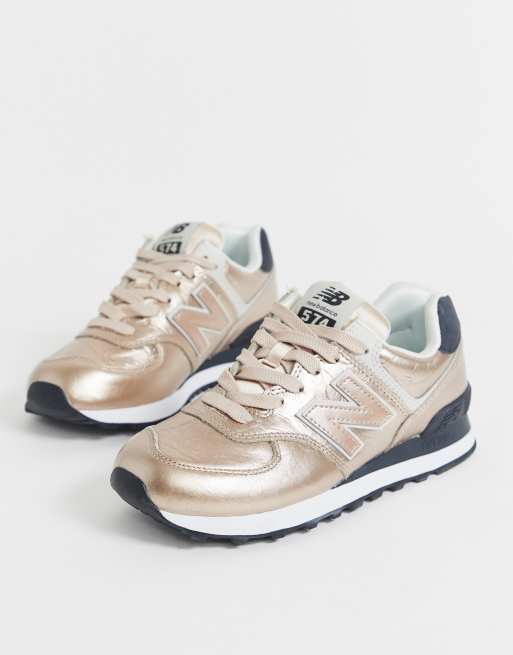 Zapatillas metalizadas en dorado rosa 574 de New Balance