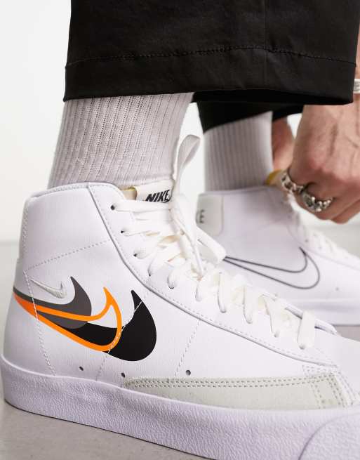Nike Blazer Mid 77 stacked swoosh trainers in white and black ASOS