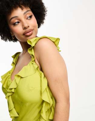 ASOS DESIGN Curve Exclusive ruffle cami maxi dress with drape detail in olive green